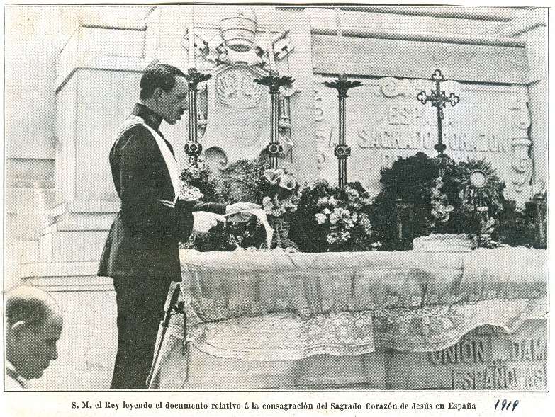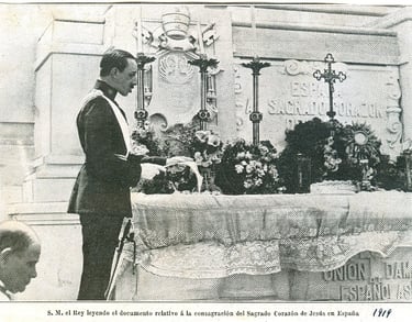 Consagración de España al Sagrado Corazón de Jesús en 1919. El rey de España Alfonso XIII lee la consagración ante el Santísimo Sacramento.