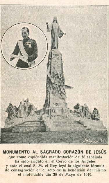 Hace ya años que, deseando consagrar España al Sagrado Corazón, se proyectó erigir en el Cerro de los Angeles un monumento al Corazón Divino con limosnas, aunque sencillas, de todo el pueblo.